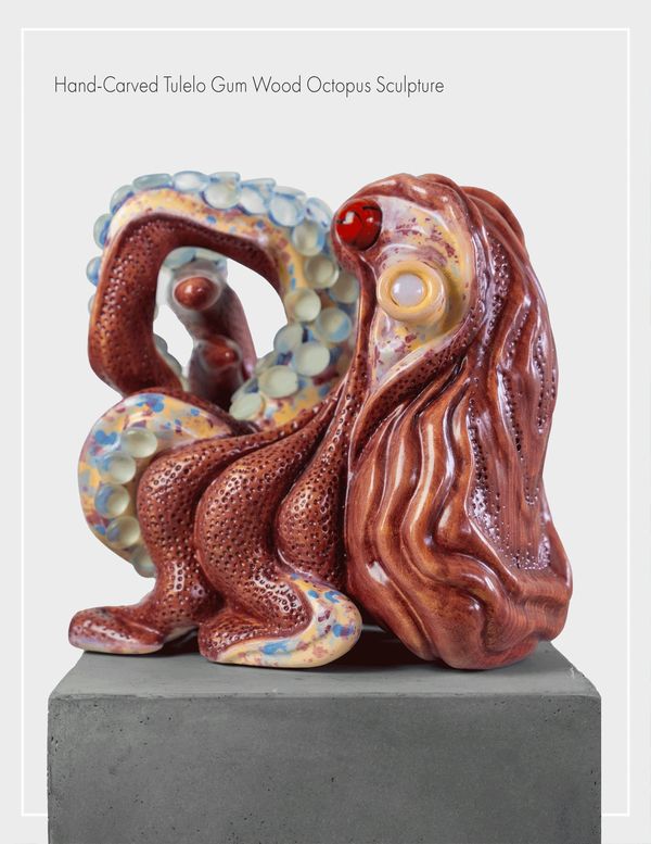 Dive into the depths of craftsmanship with this stunning hand-carved octopus sculpture, meticulously shaped from fine tupelo gum wood. Known for its smooth grain and workability, tupelo gum lends itself beautifully to the organic flow and intricate detail of this marine-inspired piece.